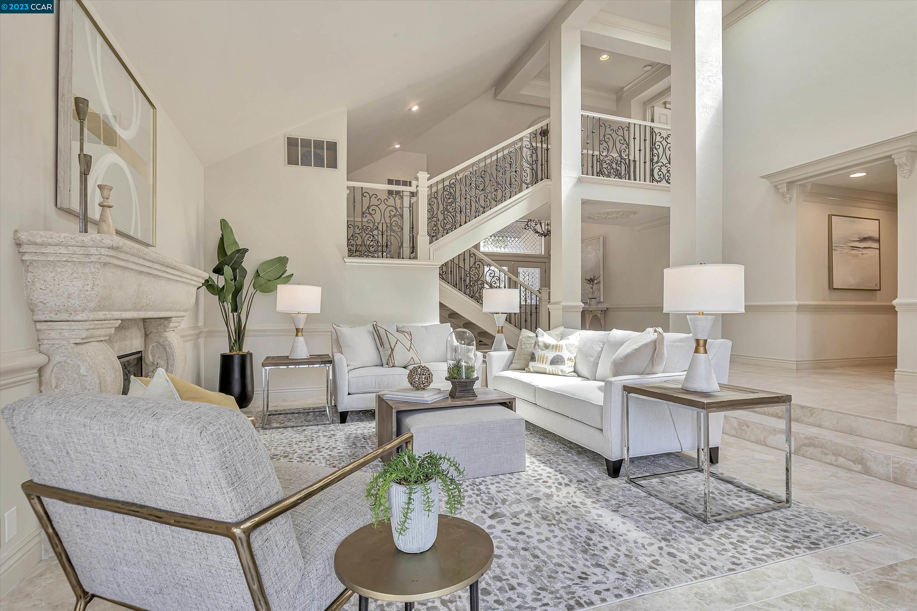 Truly stunning home overlooking the 2nd Fairway of Blackhawk Lakeside Golf Course. Spectacular panoramic views of Mt Diablo & beyond. Extensively remodeled open concept including grand skylights providing amazing natural light. $$$ in gorgeous custom cabinetry, extensive millwork & moldings. Granite, travertine & marble abound. Beveled glass front door & surround greet you to an open concept living & dining room w/ volume ceilings, stone fireplace & walls of glass to the back of the home. Massive kitchen w/ luxury stainless appliances including Granite slab counters, huge island & backsplash. Fireplace is conveniently located between the kitchen & Family room that includes a custom entertainment area & access to rear yard. 3 spacious secondary bedrooms and 2 1/2 baths are all located on the 1st level. As you ascend the floating staircase to the second level a private entrance welcomes you to the oversized master suite offering an exquisite bath w/ custom stone work & oversized shower for two. Large walk in closet w/ a secret compartment & additional closet as well. The impressive office has marble flooring, extensive cabinetry, built in desks & a private balcony that views Mt Diablo. The rear yard includes a beautiful pool & spa, flagstone patio, fire pit. Side yard w/shower.